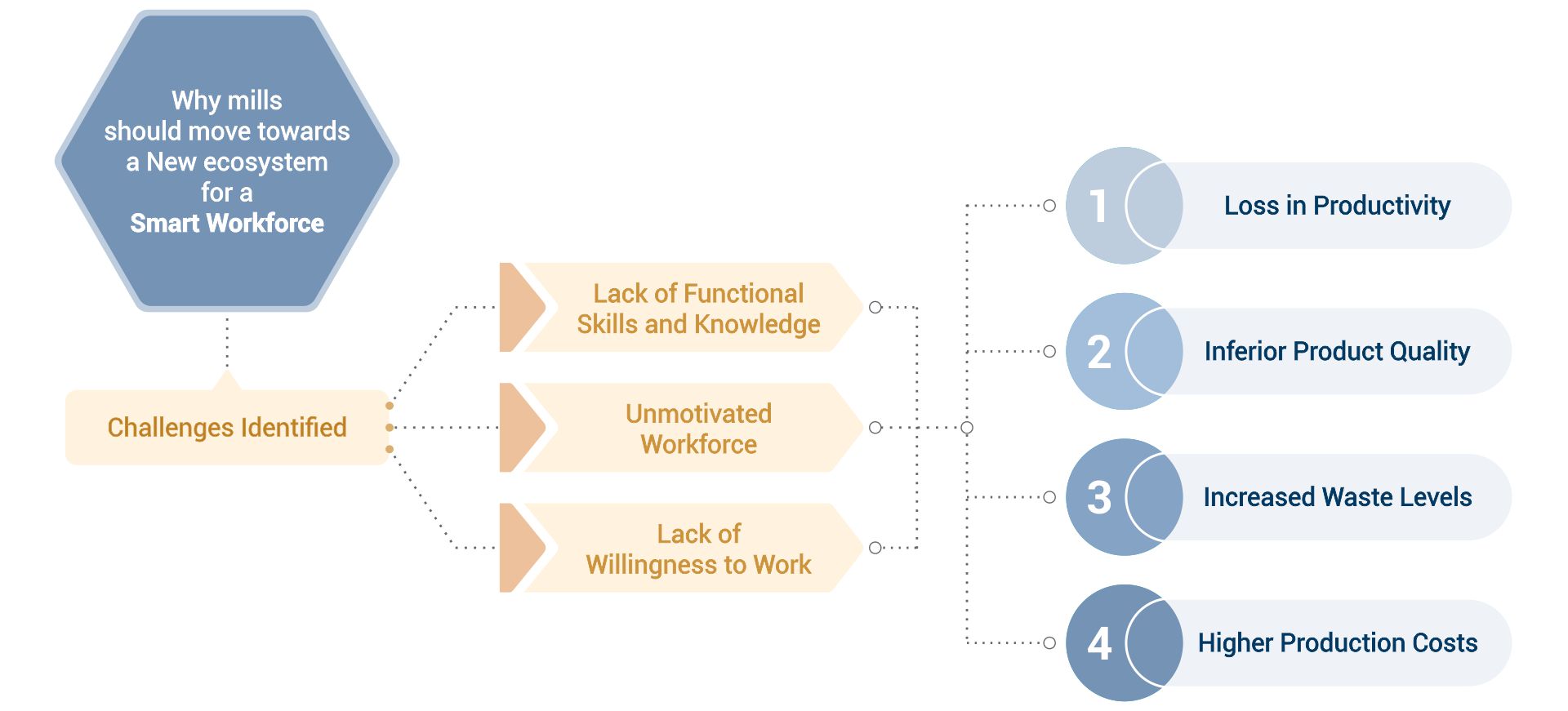Traditional workforce models are no longer enough. Mills today face significant challenges like skill gaps, low motivation, and lack of willingness to work — all of which lead to productivity loss, quality setbacks, rising waste, and increased production costs.
